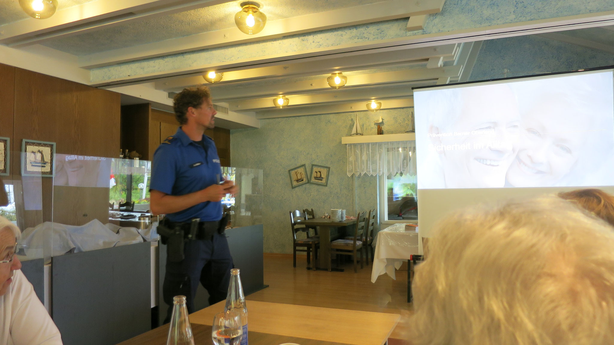 Auf dem Programm stand ein Mittagessen in der Möve, Faulensee, mit anschliessendem Vortrag von Toni Müller, Abteilung Prävention der Kapo Bern über die Sicherheit im Alltag.